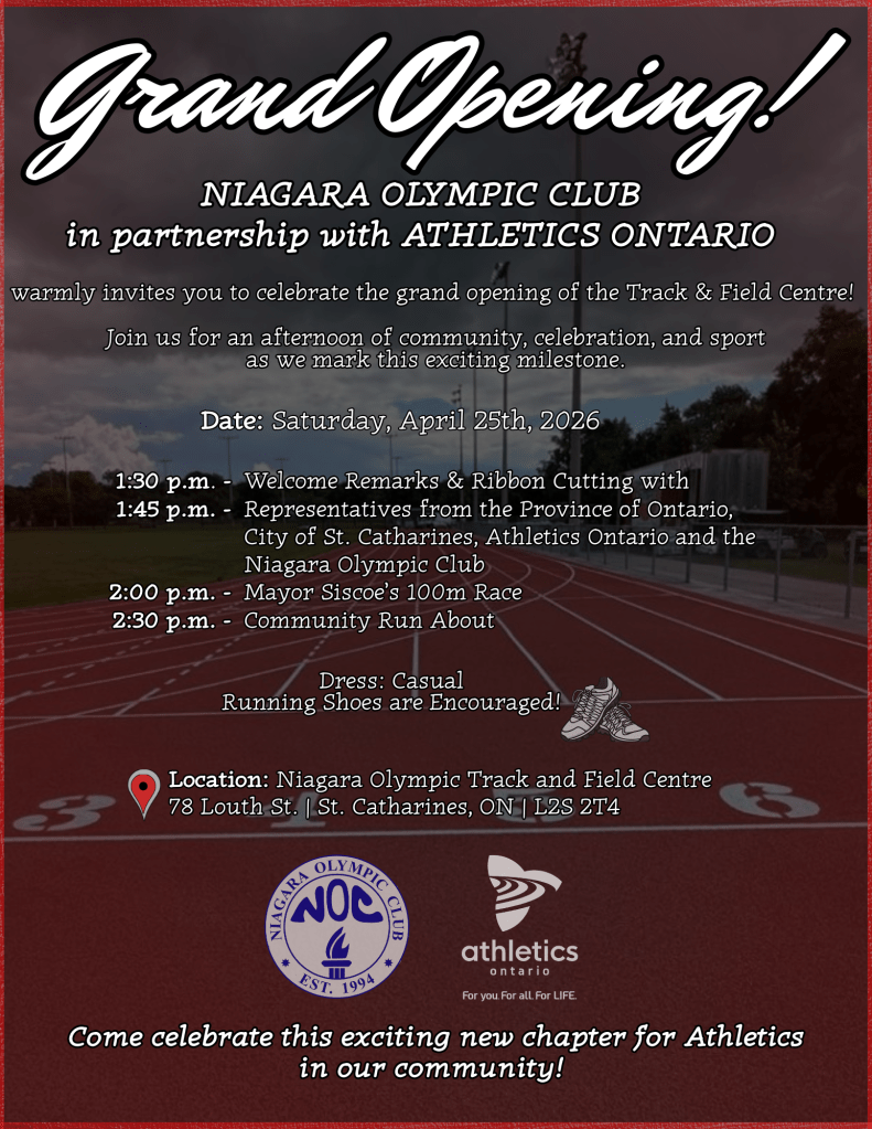 Niagara Olympic Club (NOC) was initially established in 1994 to unite top-tier runners in the Niagara Region. We’ve since redefined our mission to welcome all track and field athletes in the area.