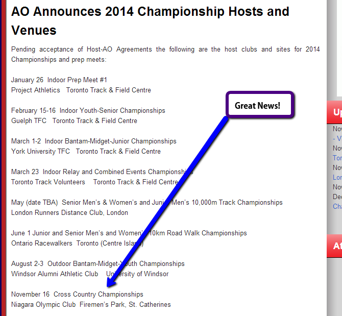 Niagara Olympic Club is proud to announce it will be hosting the Athletics Ontario Cross Country Championships for 2014.